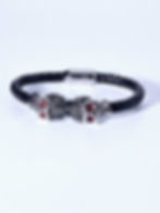 Lederarmband geflochten mit Edelstahl Skull mit roten Augen